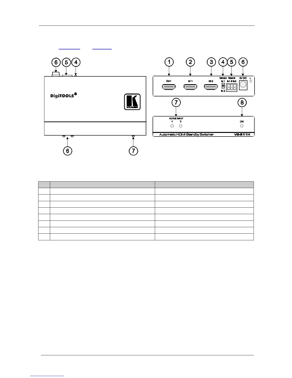 Table 1: VS-211H Automatic HDMI Standby Switcher Features