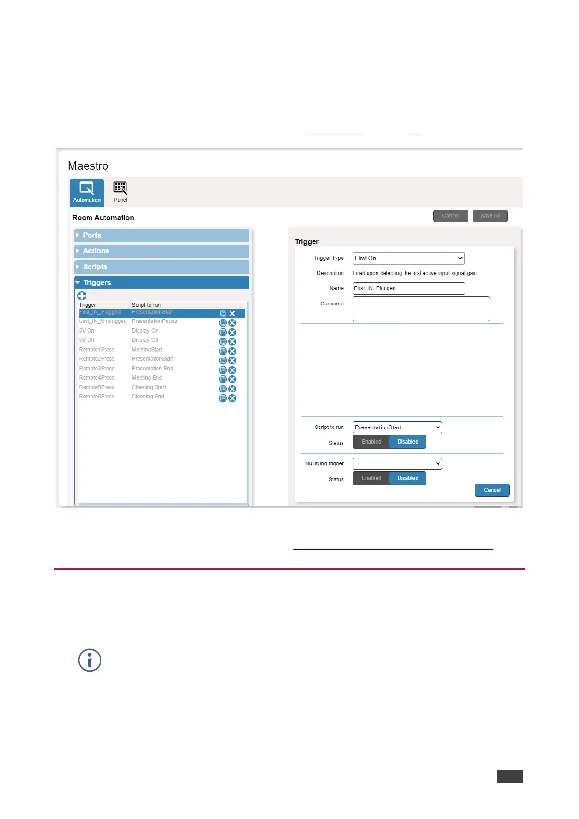 run. For example, click the built-in First_IN_Plugged trigger that triggers the PresentationStart