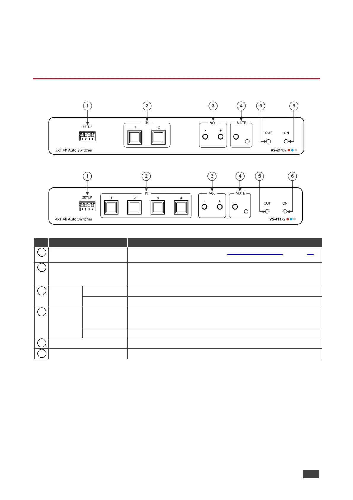 Figure 1: VS-211XS 2x1 4K Auto Switcher Front Panel