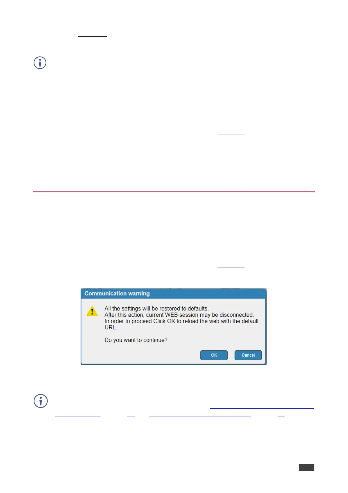 2. Click Factory reset. The Communication warning appears.