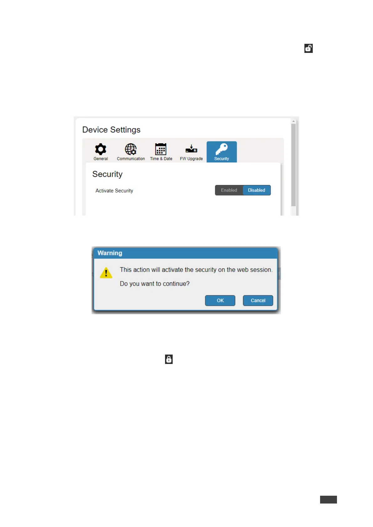 5. Click OK. The password fields disappear, and the upper right icon changes to .