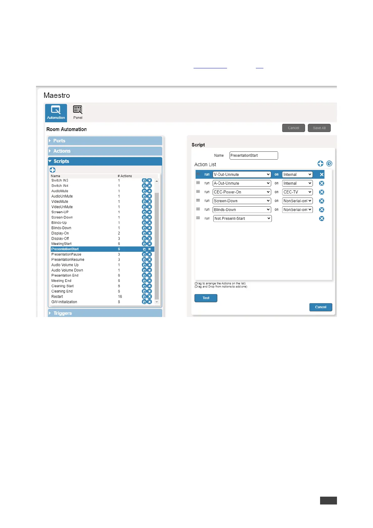 PresentationStart script to view its list of actions.