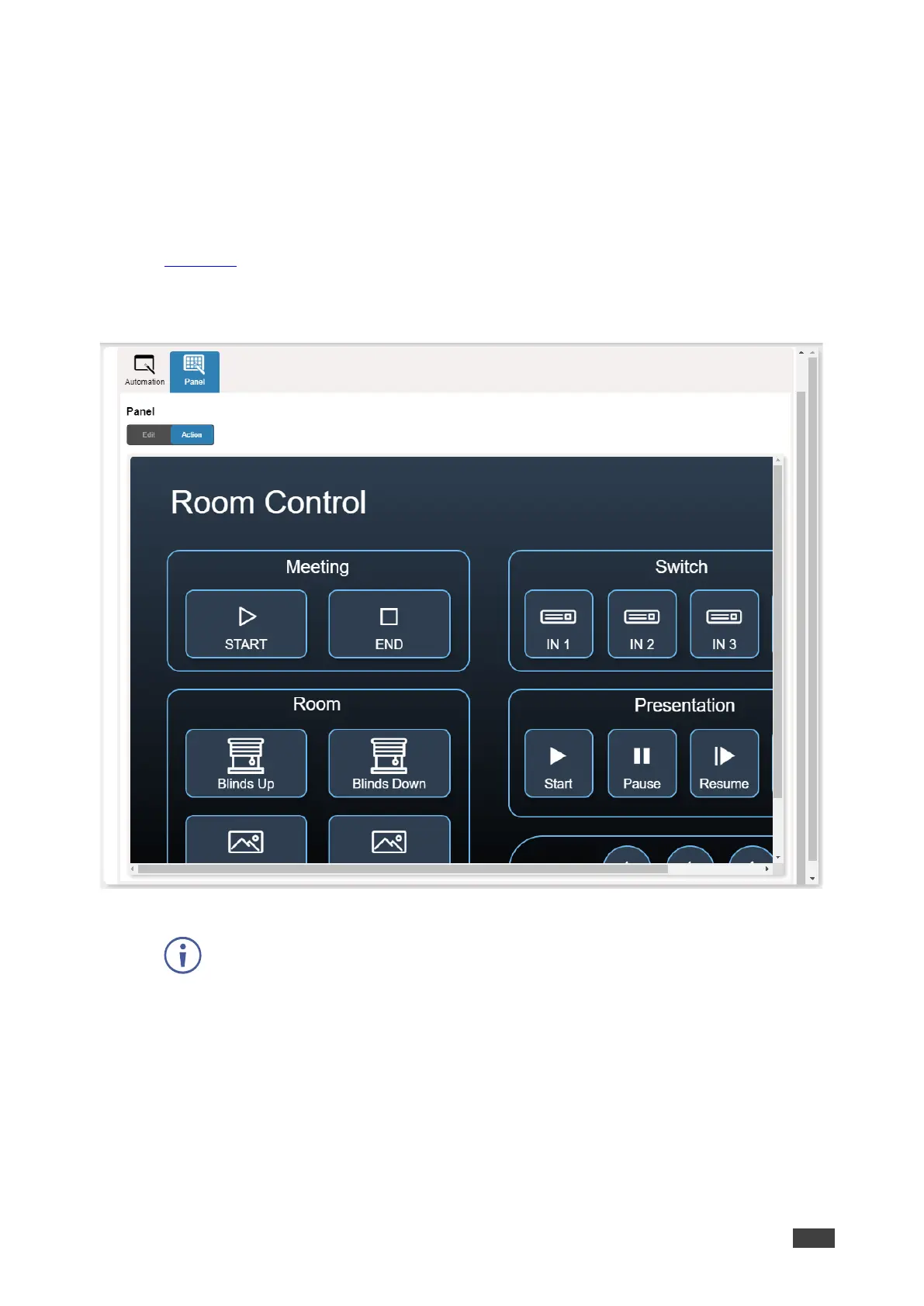 2. Click the Panel tab (by-default, in Action mode). The default VS-411XS Maestro Room