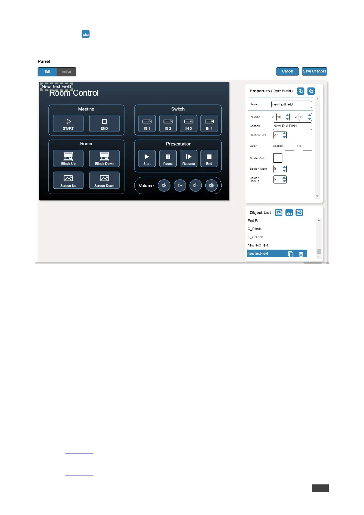 4. Click (add a text field) to add a new text field to the panel. A new text field is added