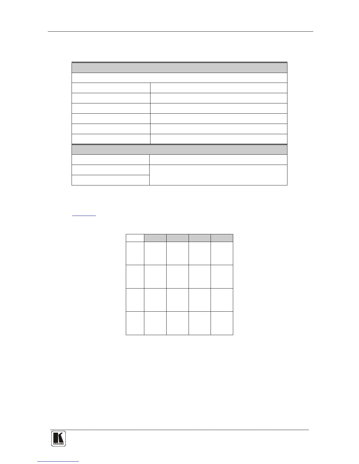 Table 4: VS-44H Hex Codes for Switching via RS-232/RS-485