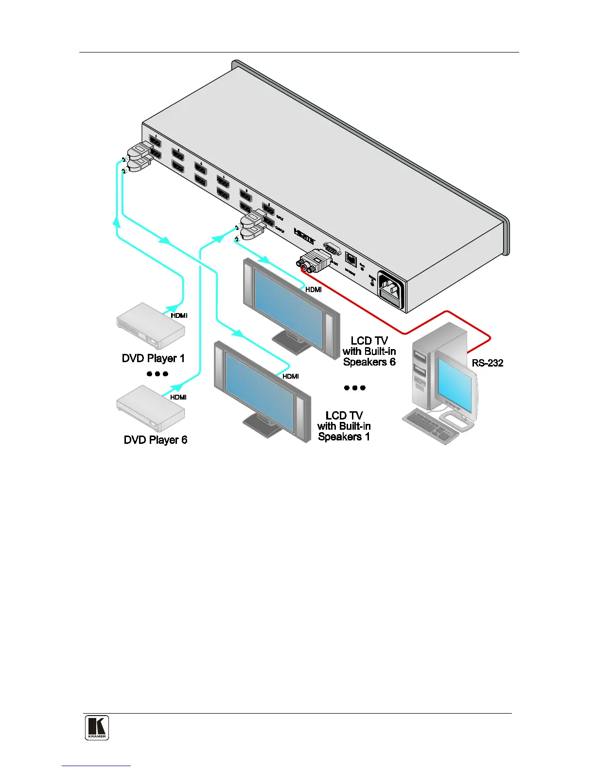Connecting a VS-66H 6x6 HDMI Matrix Switcher