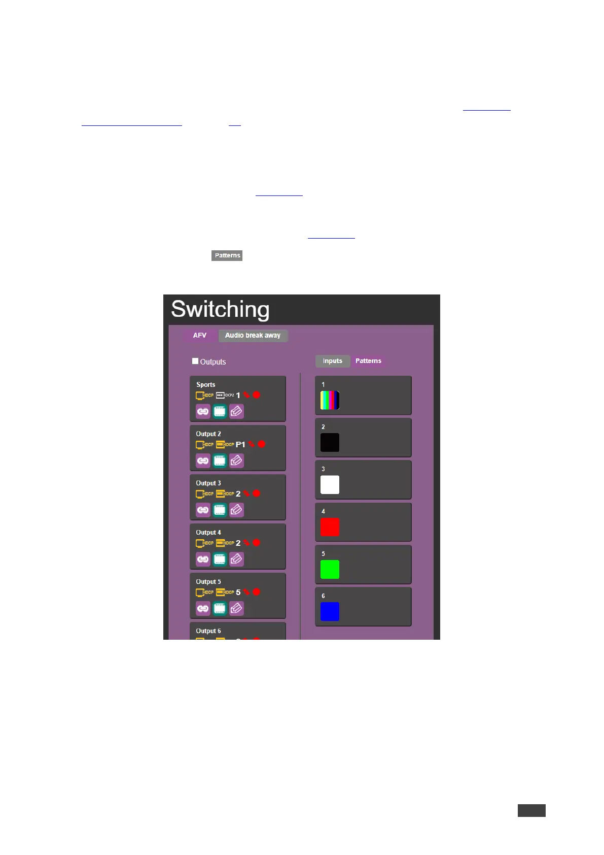 information on switching a pattern to an output using front panel buttons, see Routing a