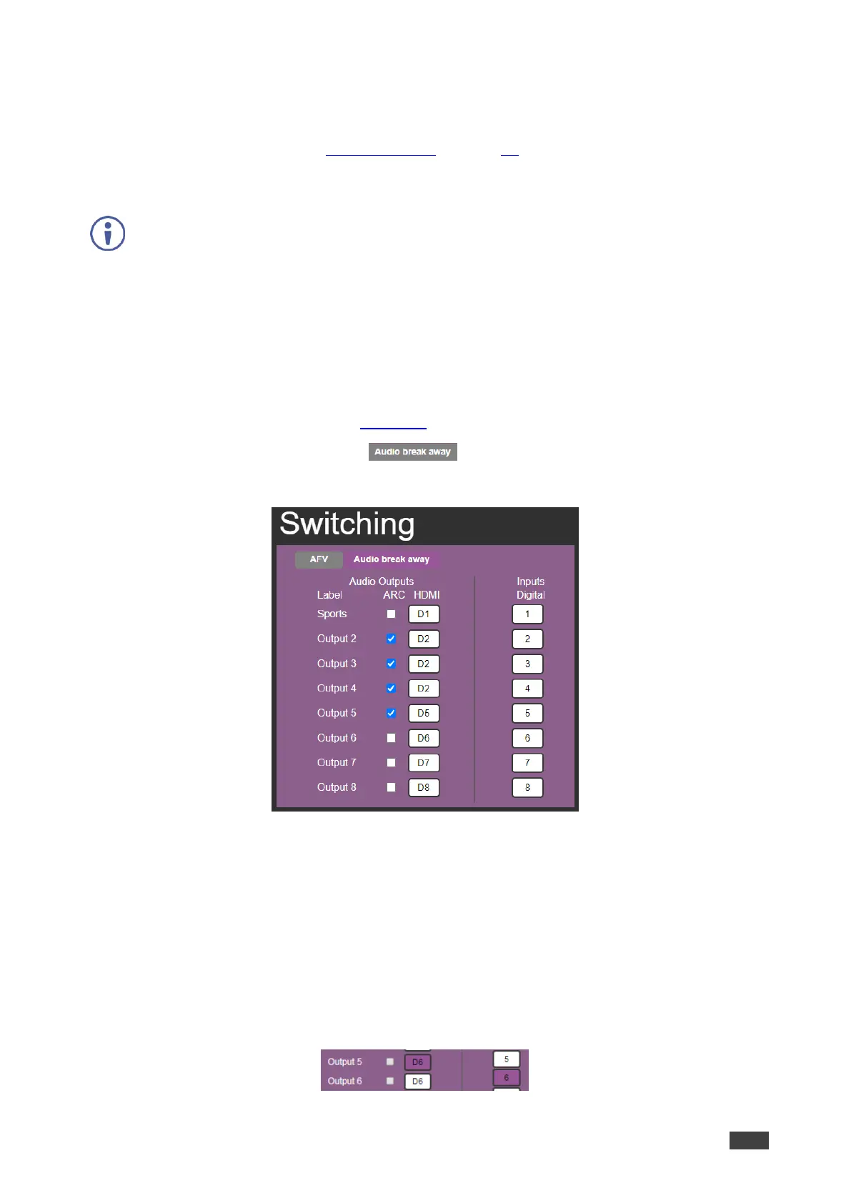 Figure 27: Switching Page – Switching audio signals in the Breakaway Mode