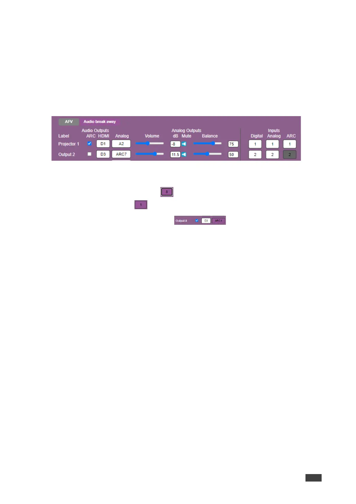 For example, output 1 is set to ARC mode so the output 1 audio signal returns to the