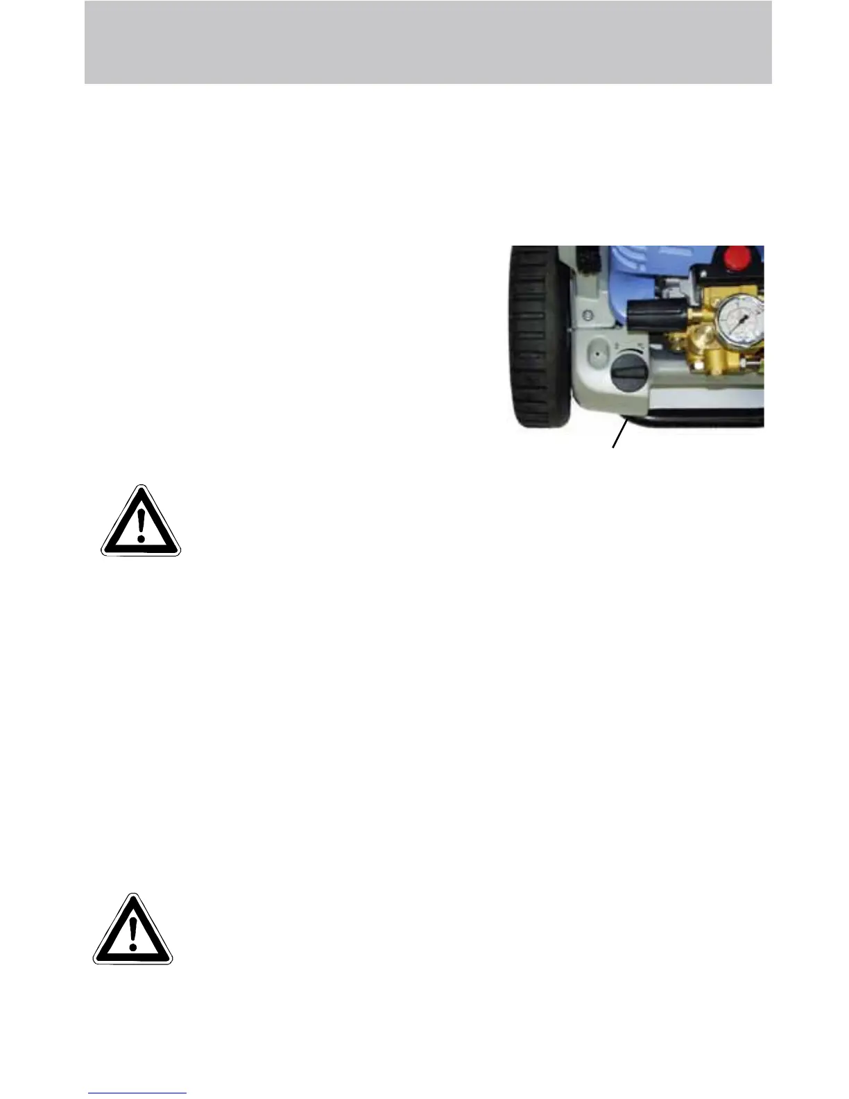 The water must be lead to the high pressure cleaner under pressure (2 – 8 bar