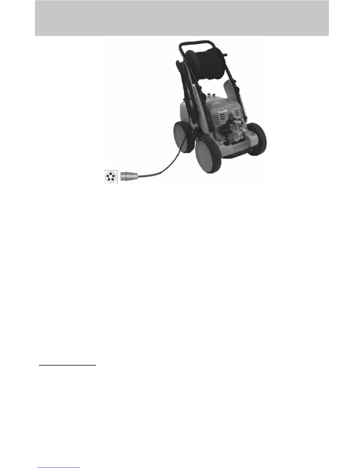The machine is supplied with an electrical power cord with plug.