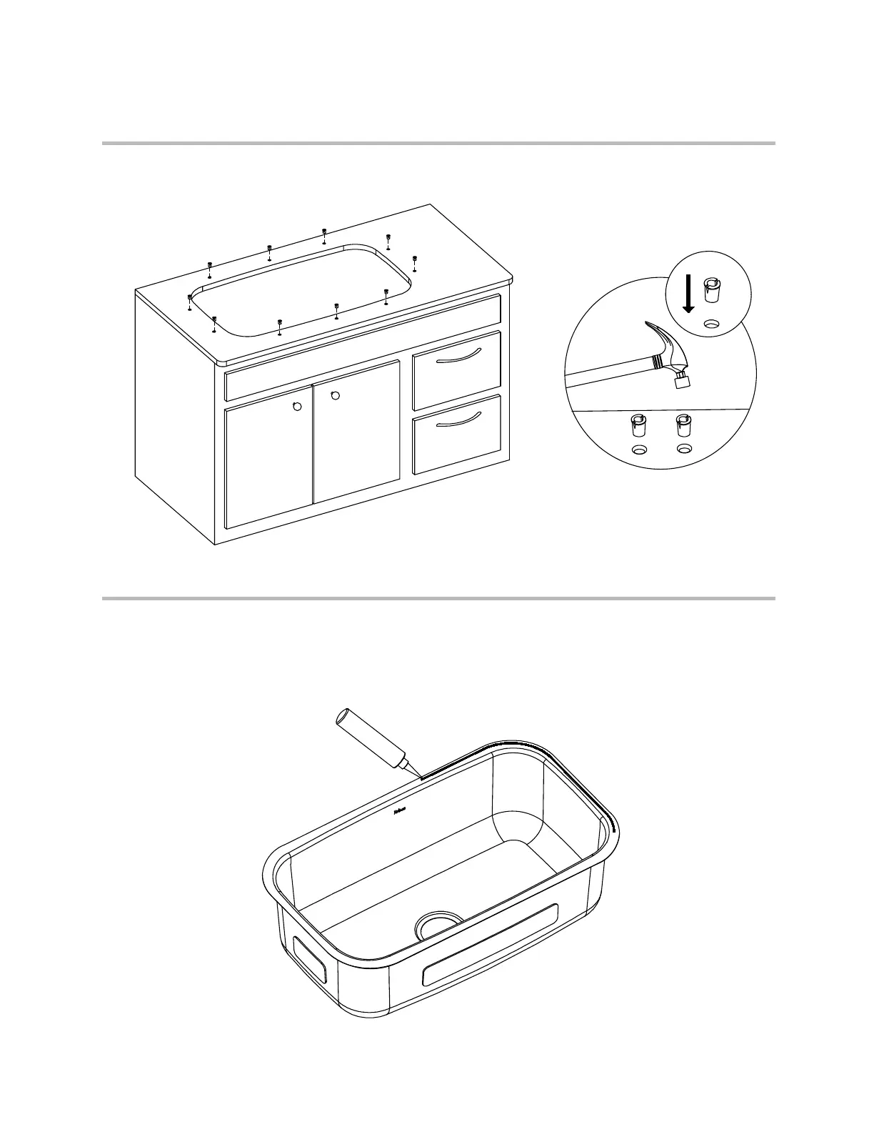 · Use a bead of silicone (or preferred adhesive) around the rim of the sink.