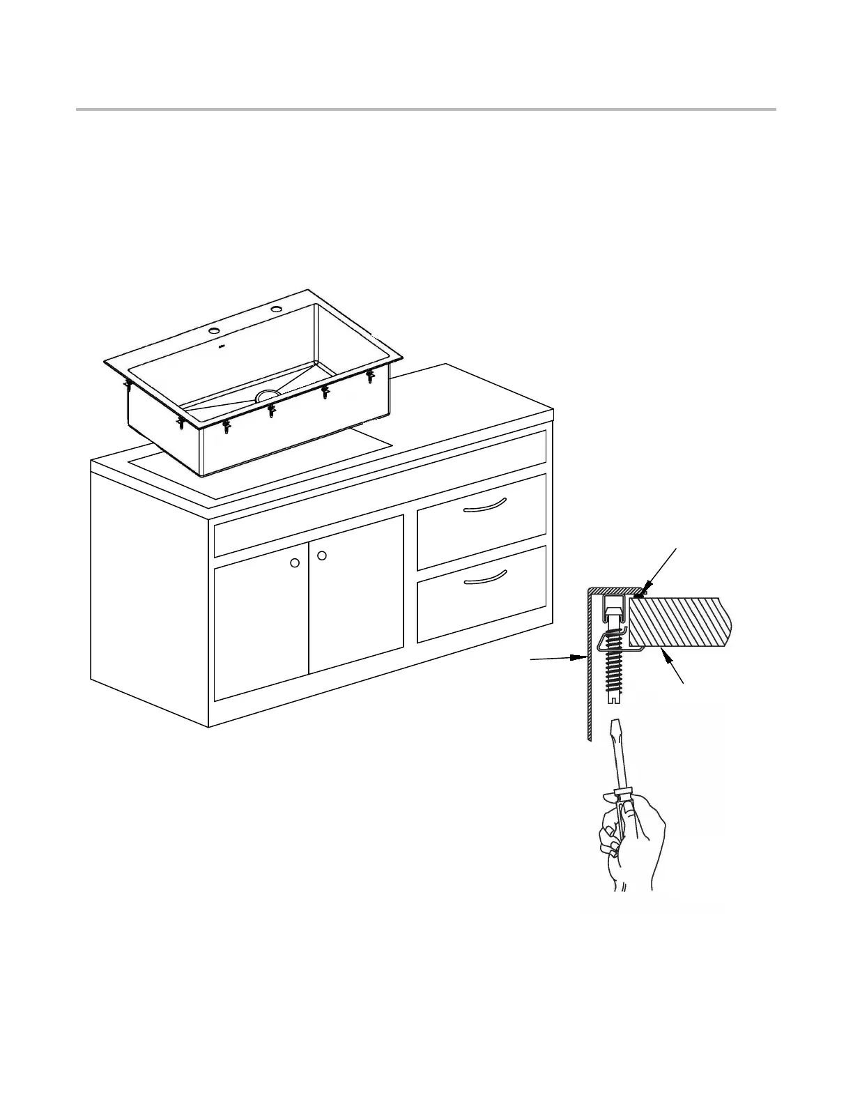 • Insert the sink into the opening, check the alignment of the sink to the cutout in the countertop and press firmly.
