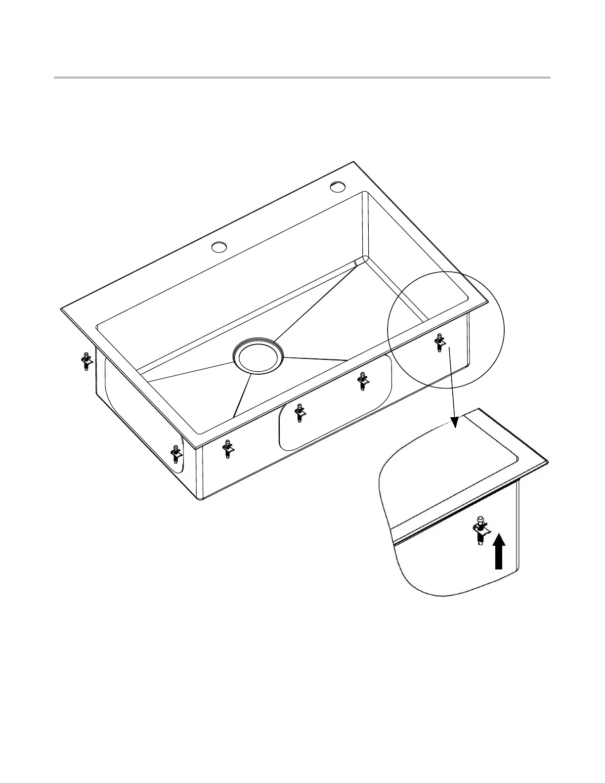 · Attach mounting hardware to the prongs protruding from the underside of the sink rim.