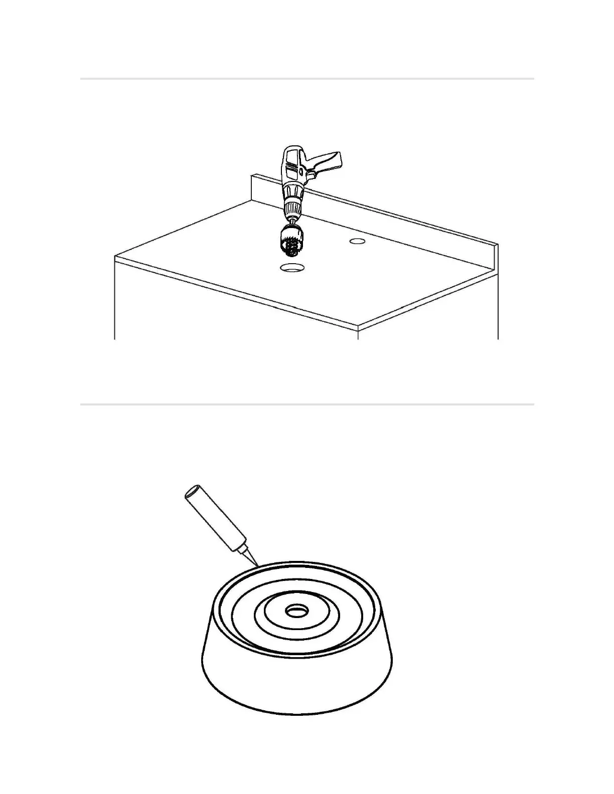 · Cut the drain opening in the countertop by carefully placing the 4"