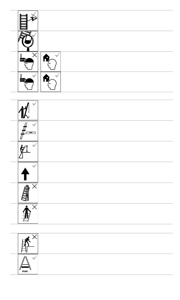 ler için doğru dayama açısı (eğim açısı 65 ila 75°) seçilmeli, basamakları yatay