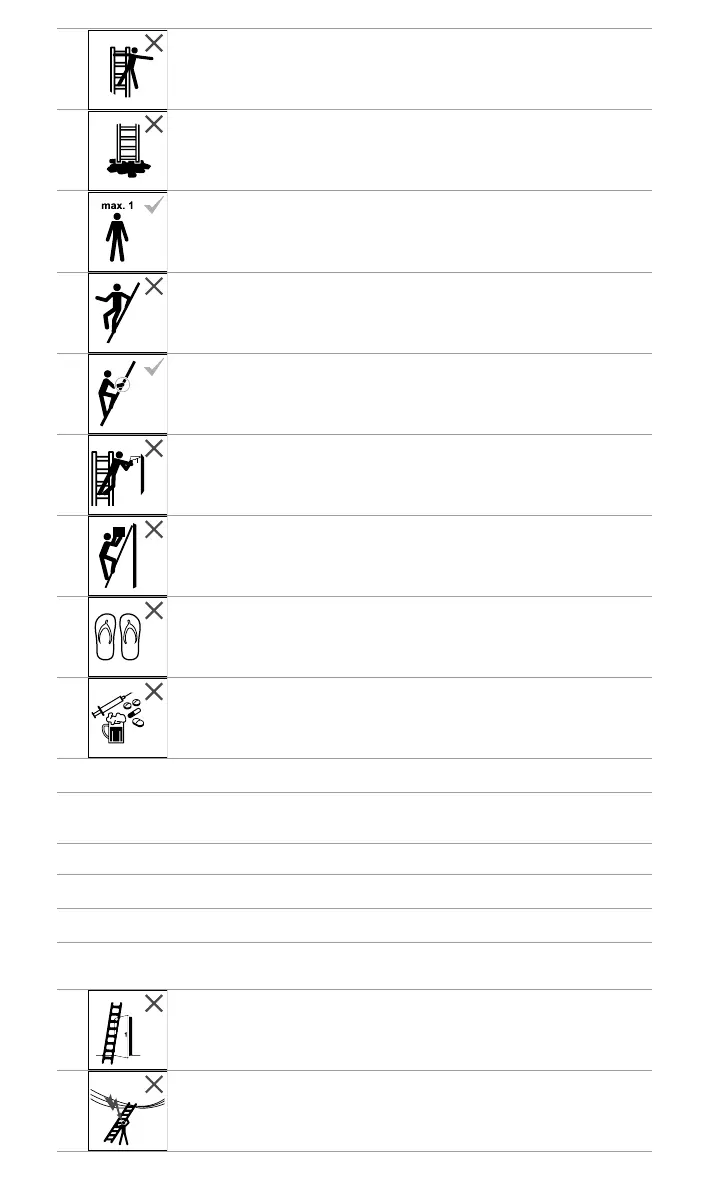 Држете се цврсто кога се качувате, слегувате и работите на скалата, а