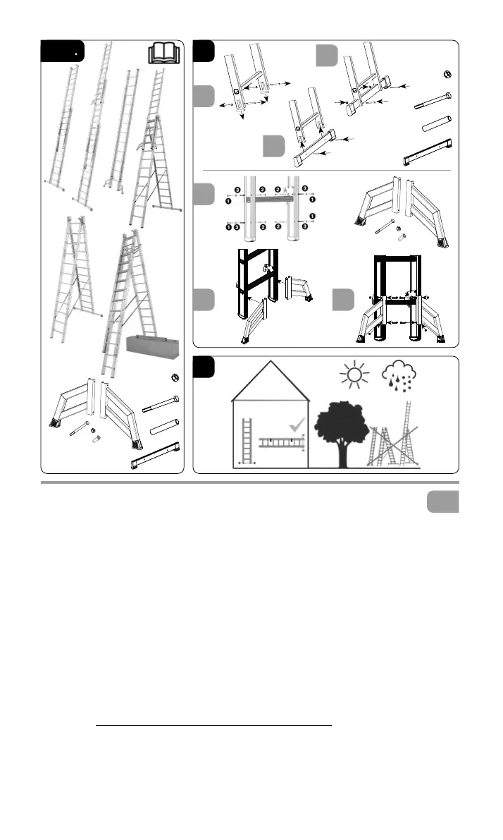 4. Navodila za sestavljanje: Pred uporabo je treba lestev v celoti sestaviti glede na vrsto