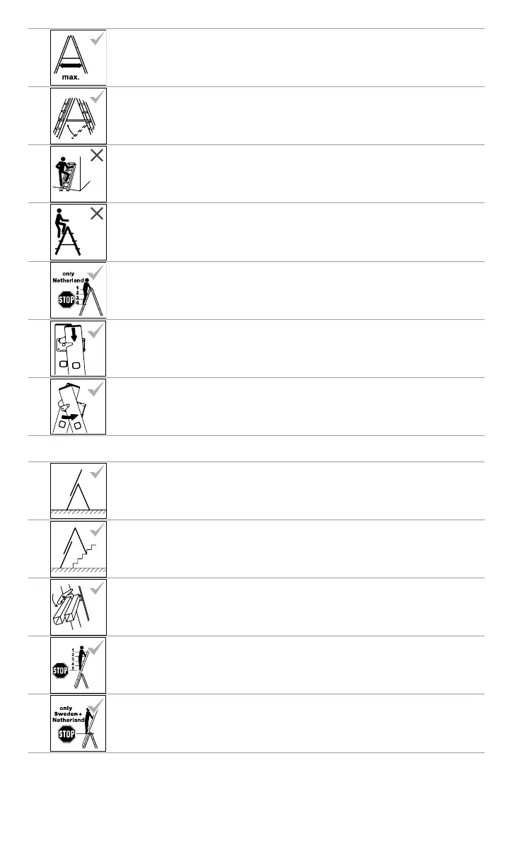 På stiger uten plattform må de to øverste sprossene/trinnene ikke brukes til å stå