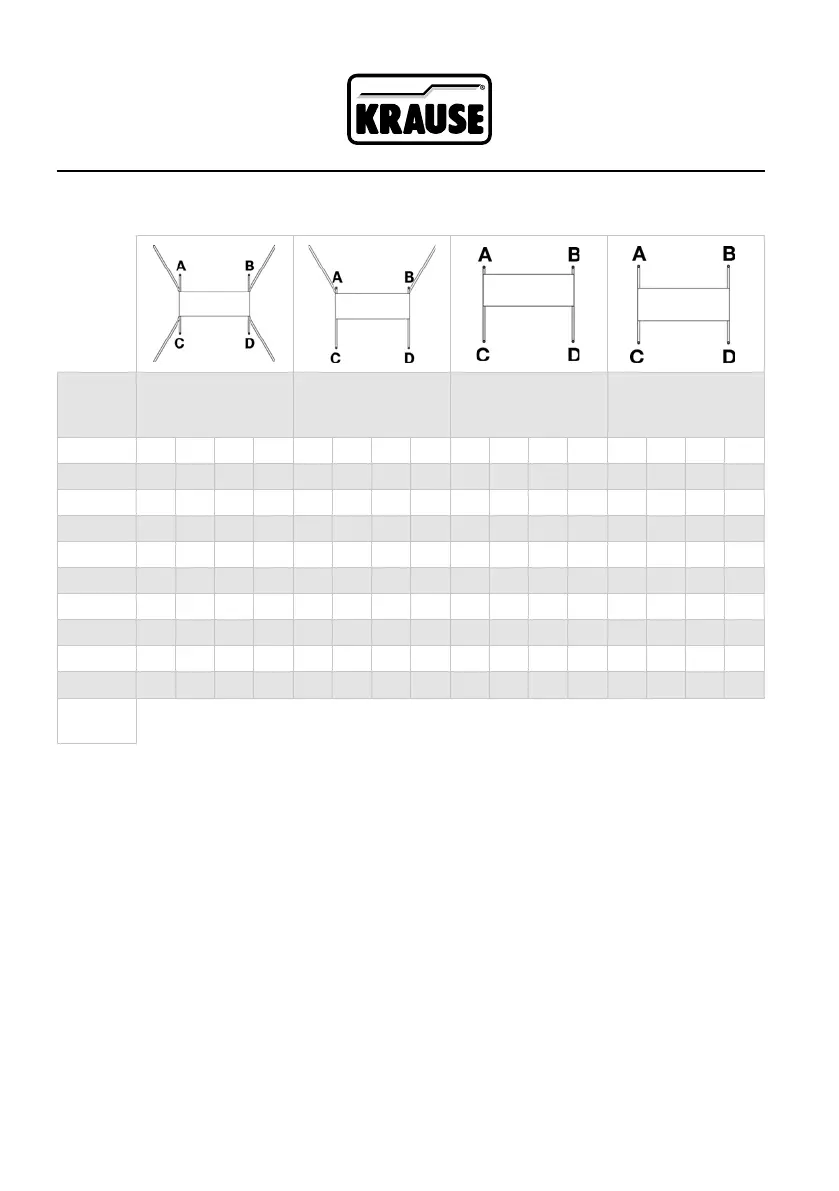 The table shows the number of ballasts to be placed on the stabiliser of the scaffold,