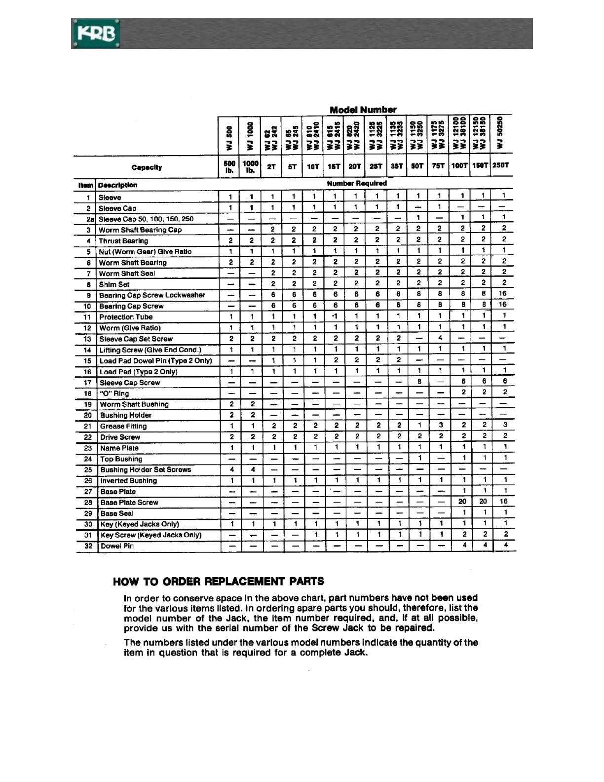 KRB 11 Radius Bender - Ordering Replacement Parts