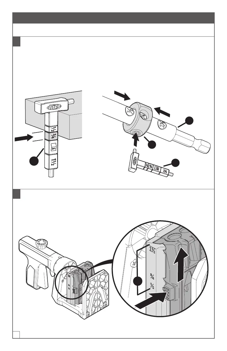 Ajuste la guía de taladrar presionando ambas pestañas (1) en la guía y deslizándola
