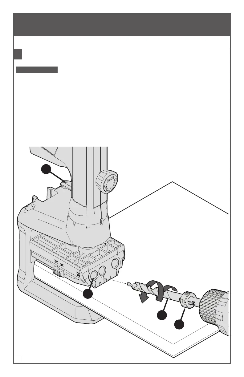 a. Coloque su broca preparada (B) con el collarín (D) en su taladro.