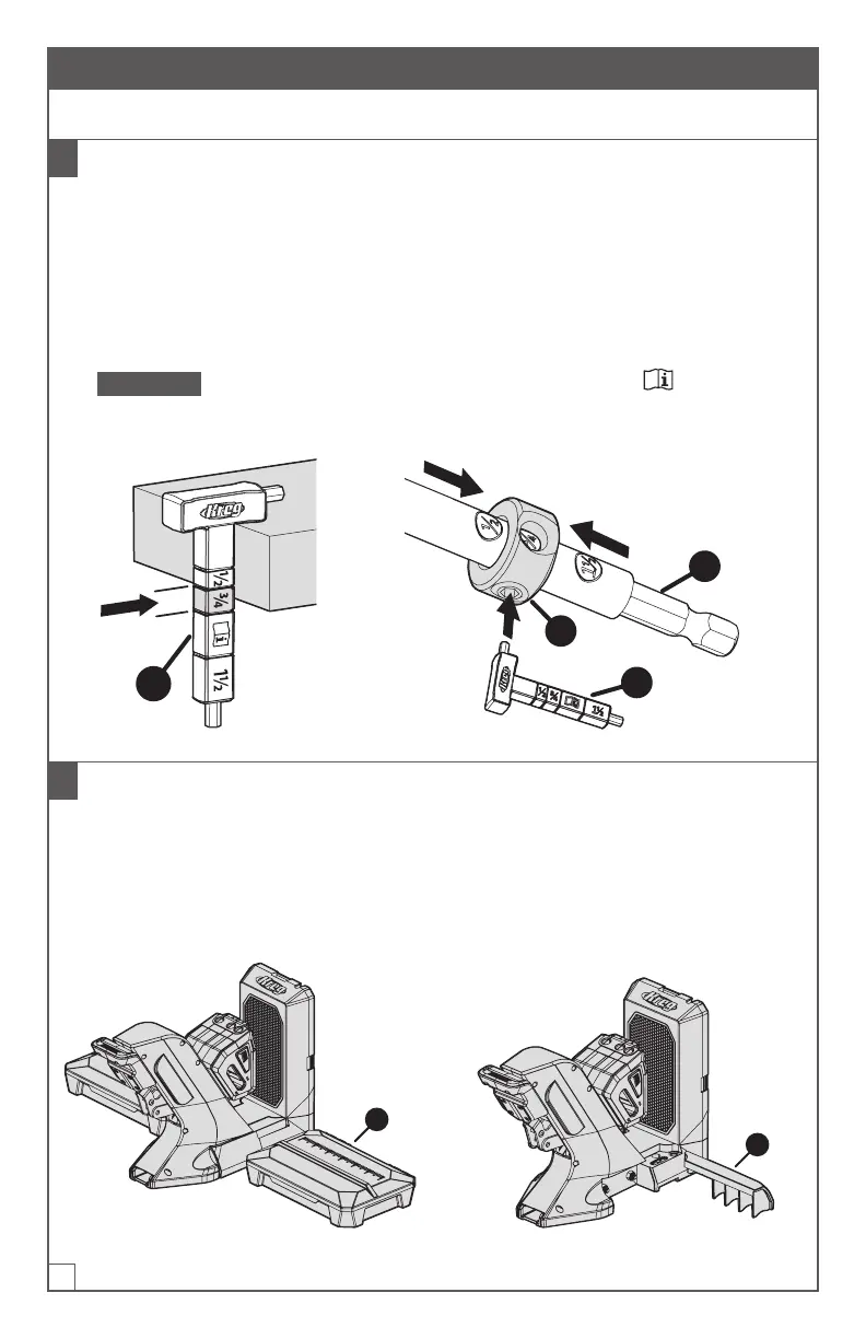 xer la bague d’arrêt (F) en place sur la mèche (E).