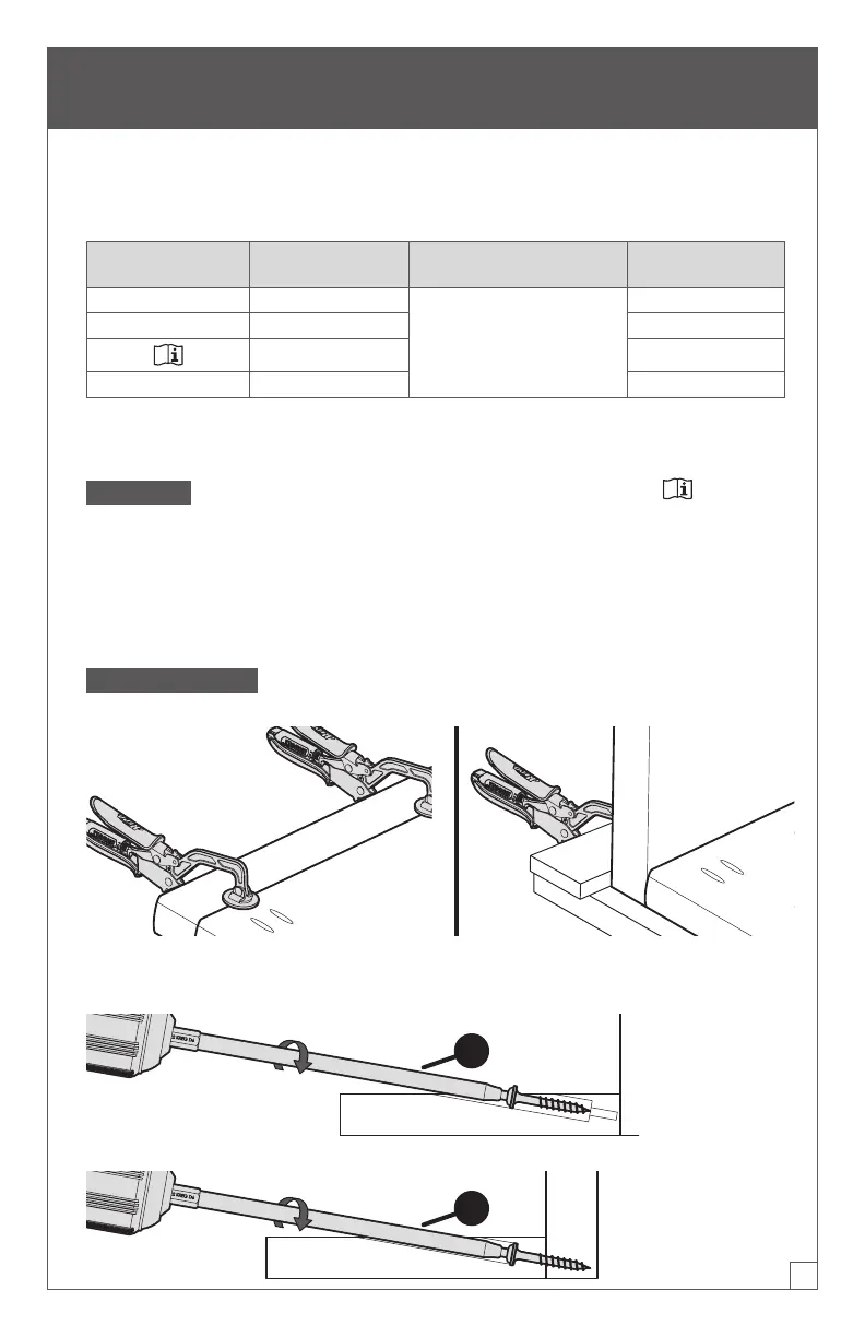 ■ Utilisez la bonne taille de vis selon ce tableau: