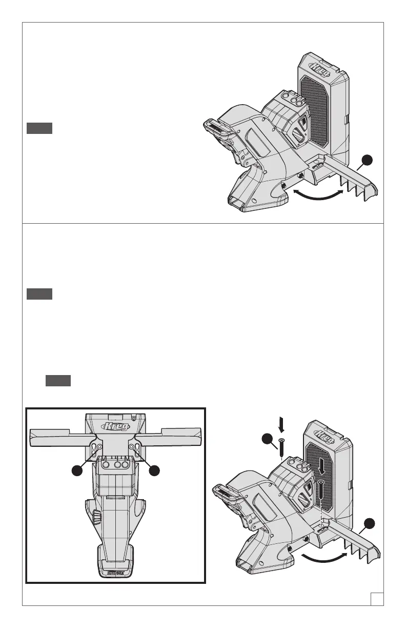 b. Rote el ala de extensión (1) de cada lado de la guía a 90 grados.