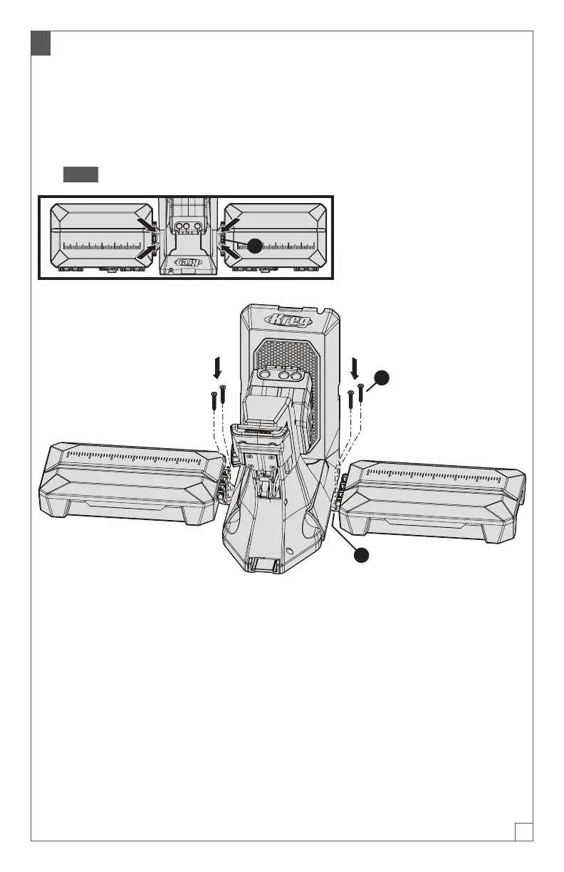 b. Drive one Kreg pocket-hole screw (1) through each of the four mounting holes (2)