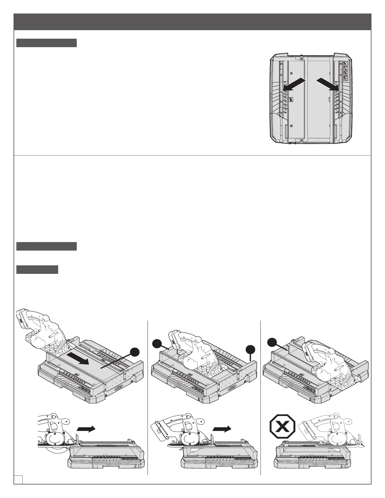 ATTENTION Arrêtez la scie et laissez la lame s’arrêter une fois que le centre de la lame de la scie a coupé
