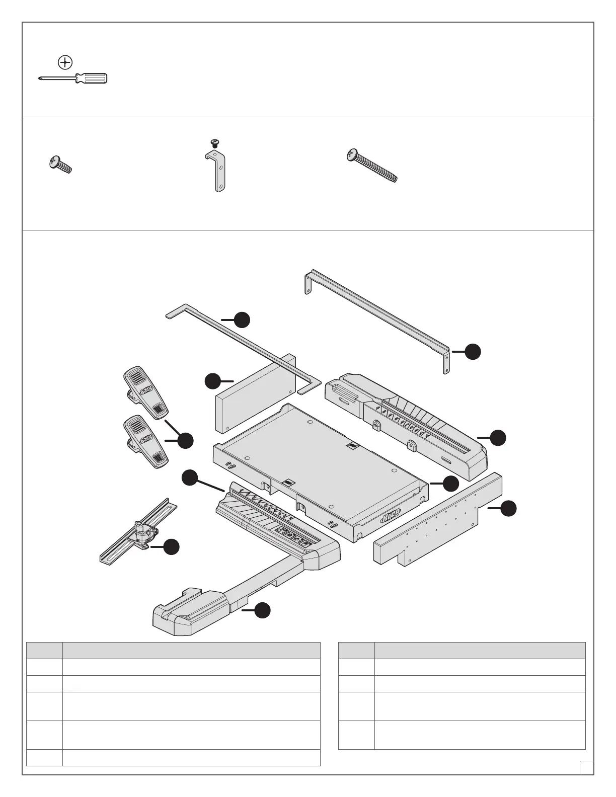 CC - Tornillo grande – 4AA - Tornillo pequeño – 12 BB - Soporte de riel con tornillo