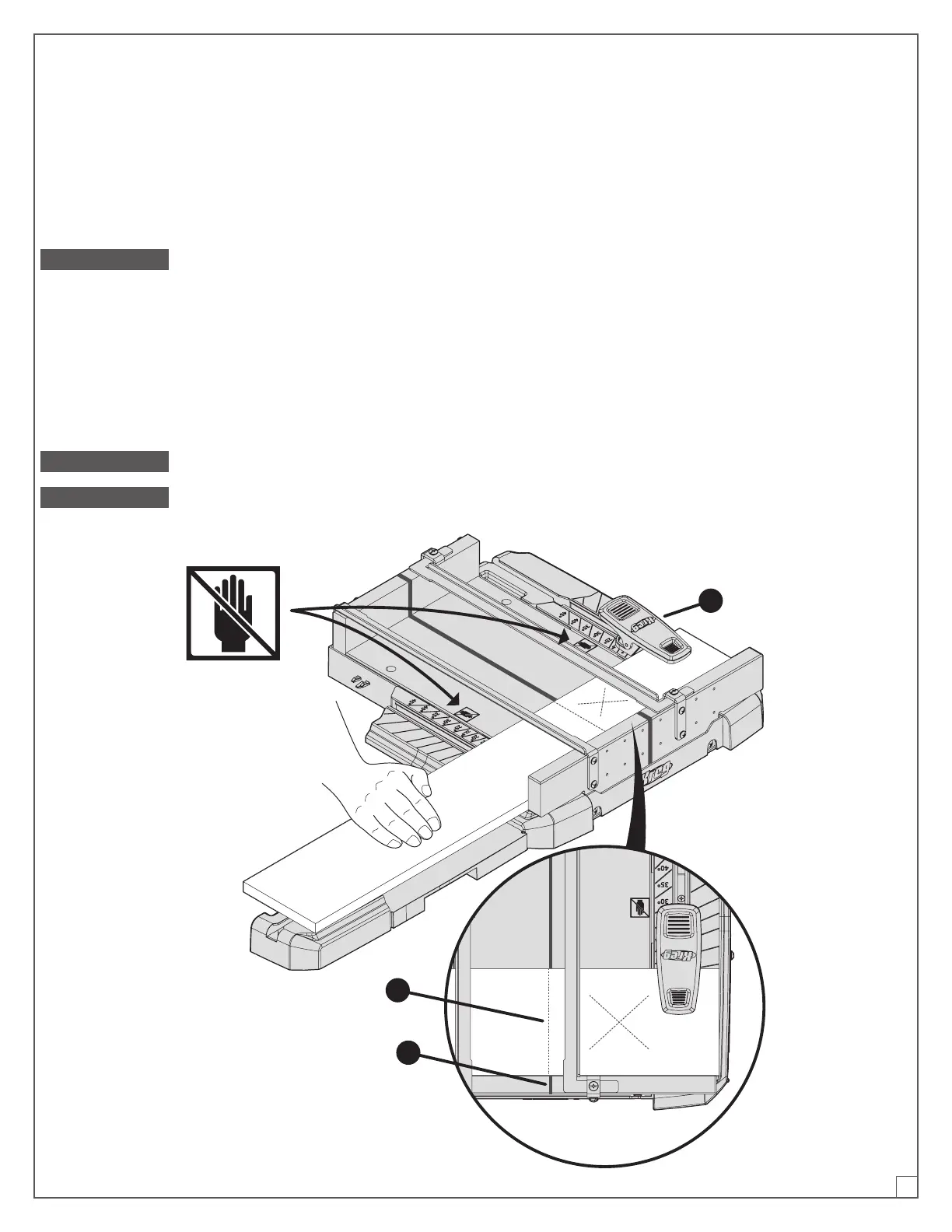 ADVERTENCIA No poner detrás de la hoja de sierra o de la escuadra una mano para sujetar o soportar la pieza