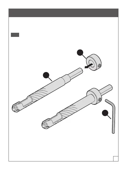 it rests on the bit shoulder. Tighten the Plug Cutter Stop Collar (C) set