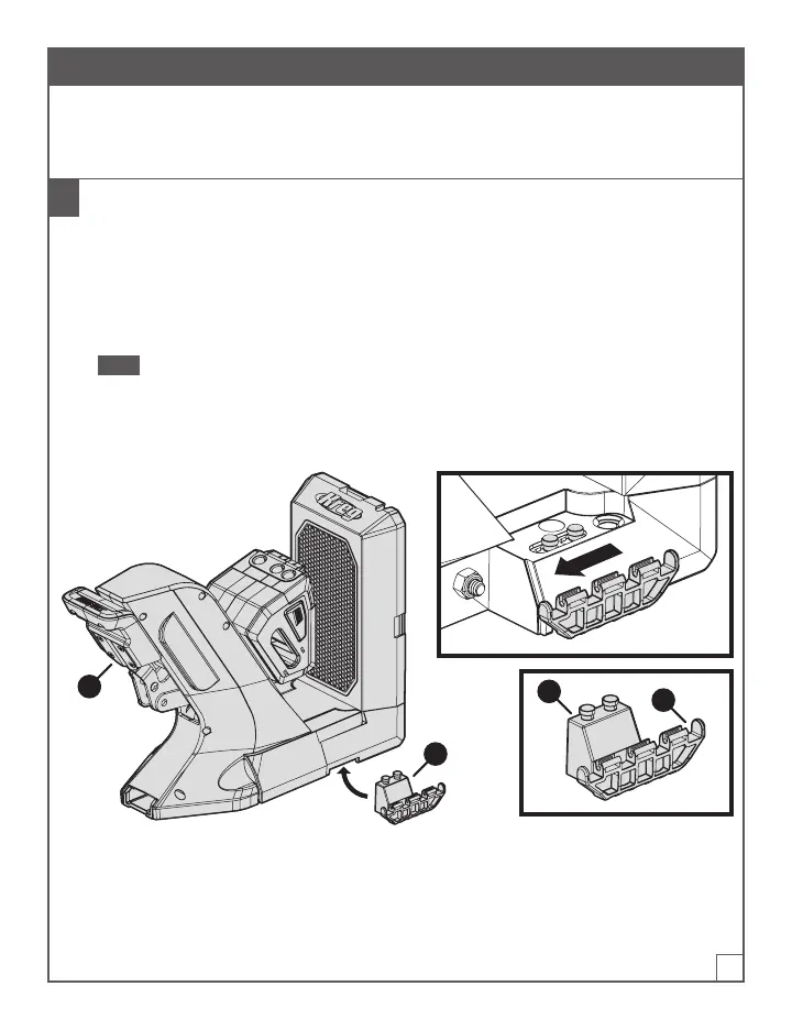 guía; luego deslice el adaptador de encastre (D) hacia la manija de la guía (3) para trabar el