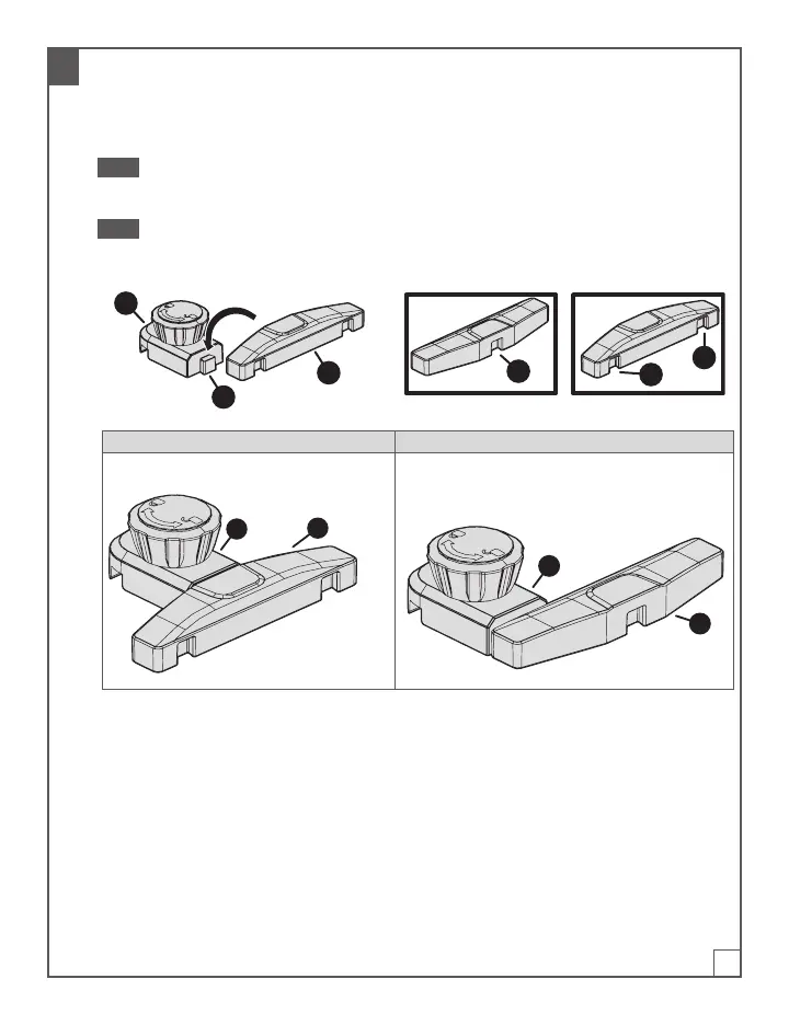 Nota El brazo del retén ajustable (F) tiene tres muescas: una muesca central (2) en un lado
