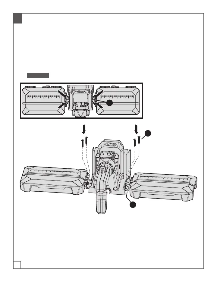 b. Enlez une vis trou de poche Kreg (1) dans chacun des quatre trous de montage (2) de la