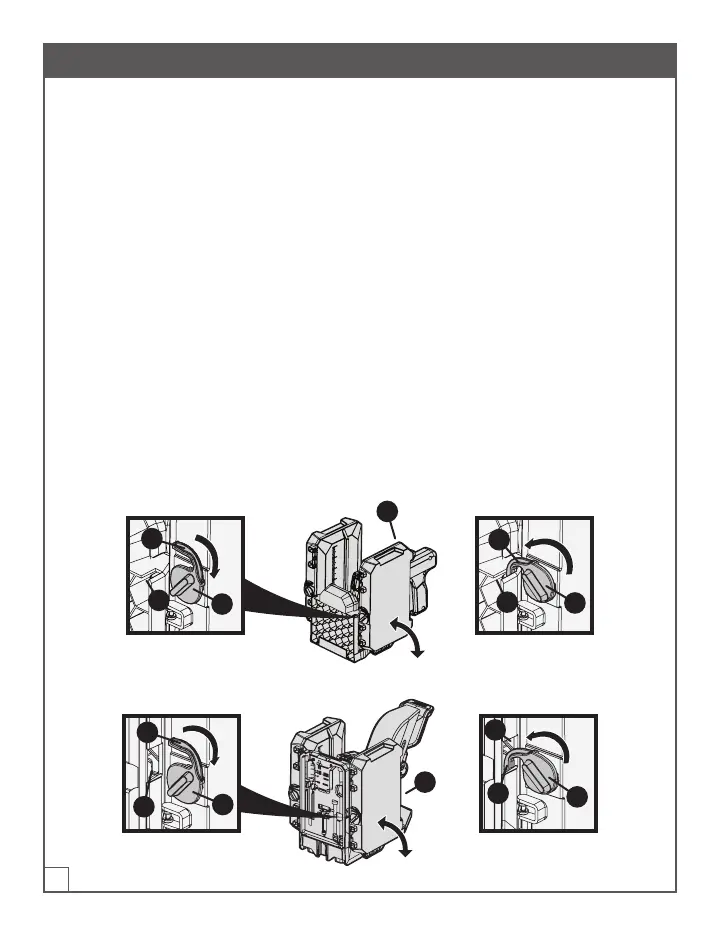b. Tournez le verrou d'ailette (1) vers l'intérieur jusqu'à ce que le loquet (2) s'enclenche dans