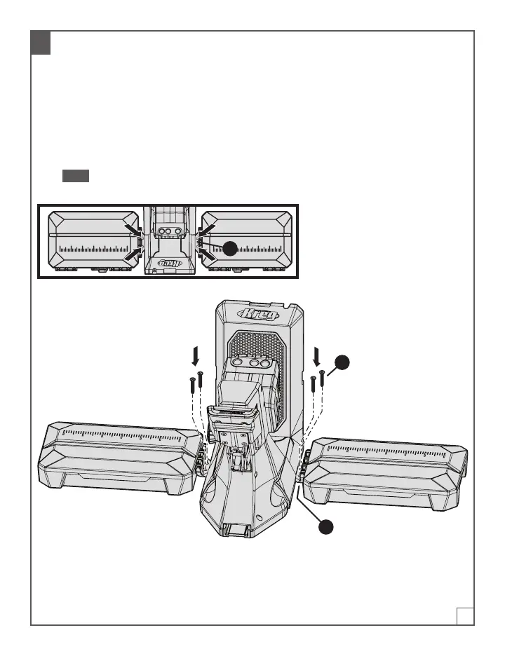 b. Pasar un tornillo de agujero de bolsillo Kreg (1) a través de cada uno de los cuatro agujeros