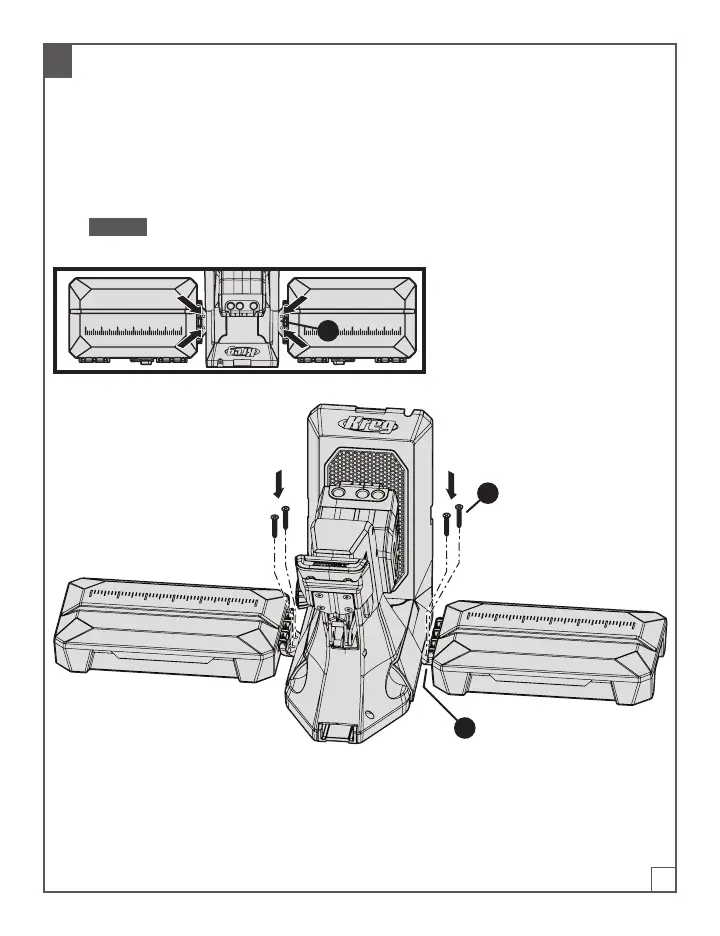 b. Durch jedes der vier Befestigungslöcher (2) in den Dockadaptern (D) eine Kreg-