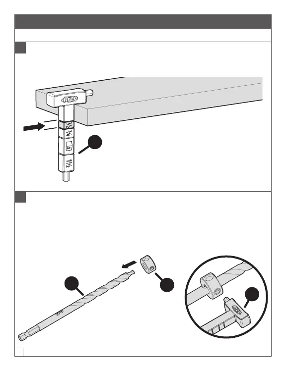 b. Die einfach verstellbare Anschlaghülse (F) mit dem Inbusschlüssel (D)