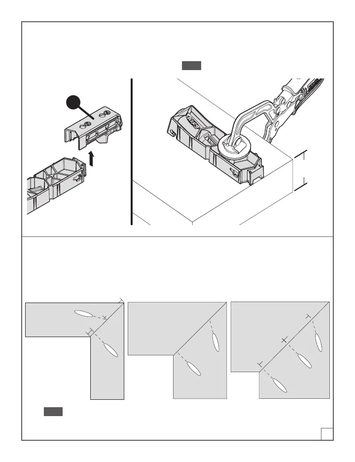 b. Coloque la guía de taladrar en la pieza de trabajo, en un ángulo alejado de la punta del inglete.