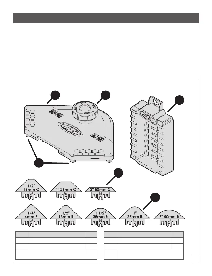 B Poignée (préalablement installée) 1 E Gabarits de prol chanfrein 3
