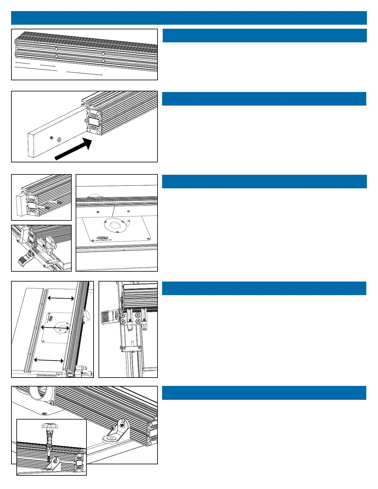 que se extienden a lo largo de la extrusión. Inserte los ocho topes de riel