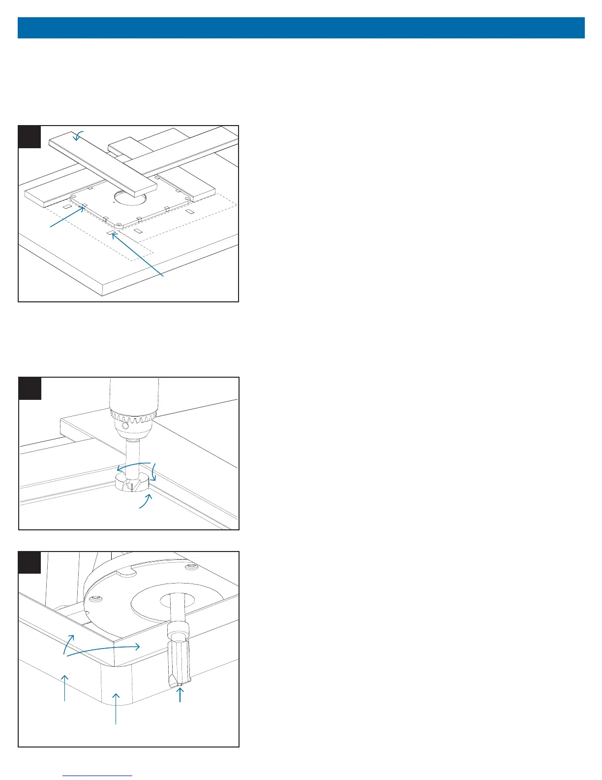 avec quatre vis de verrouillage afi n que la plaque d’insertion reste au même niveau que la surface de la table à toupie.