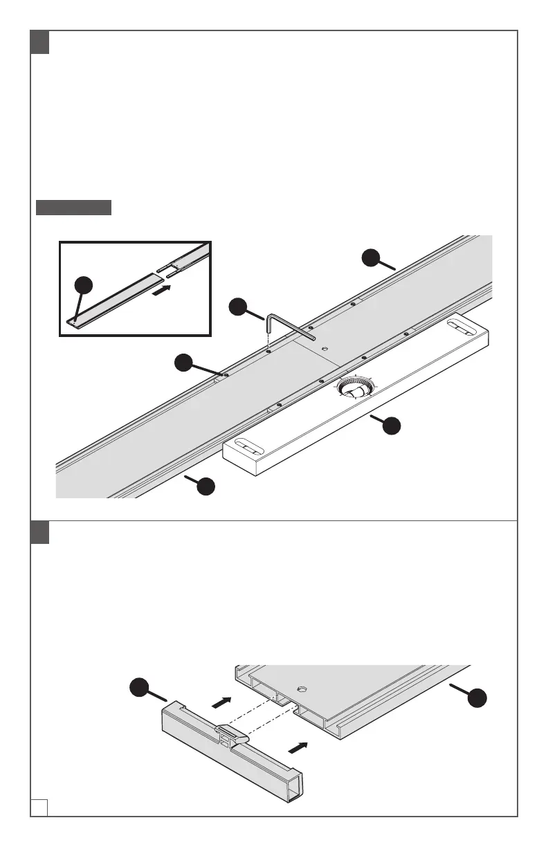 Répétez les étapes a et b jusqu’au montage complet des sections du rail de guidage.