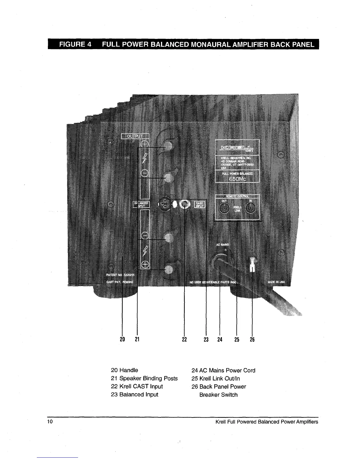 FIGURE 4 FULL POWER BALANCED MONAURAL AMPLIFIER BACK PANEL