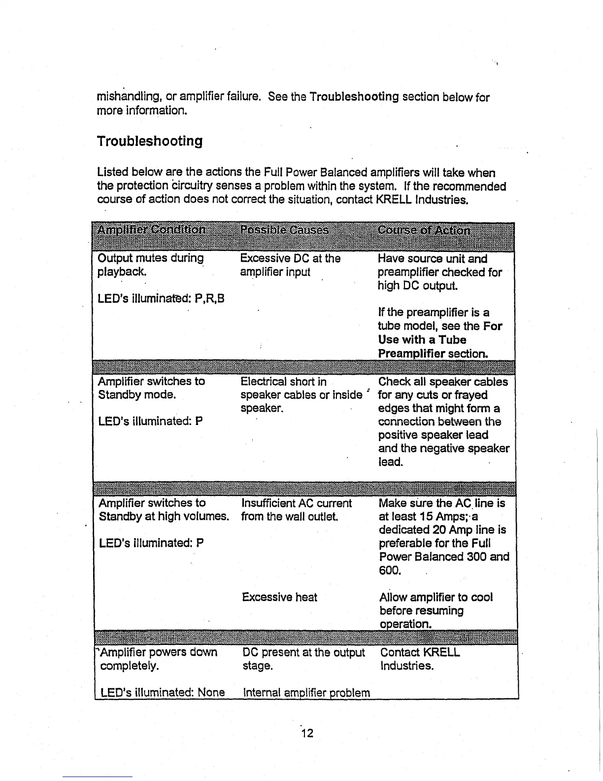 mishandling, or amplifier failure. See the Troubleshooting section below for