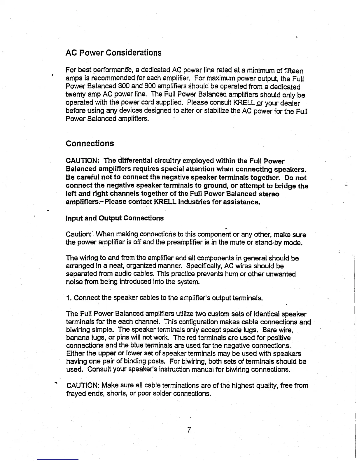 amplifiers.-Please contact KRELL: Industries for assistance.